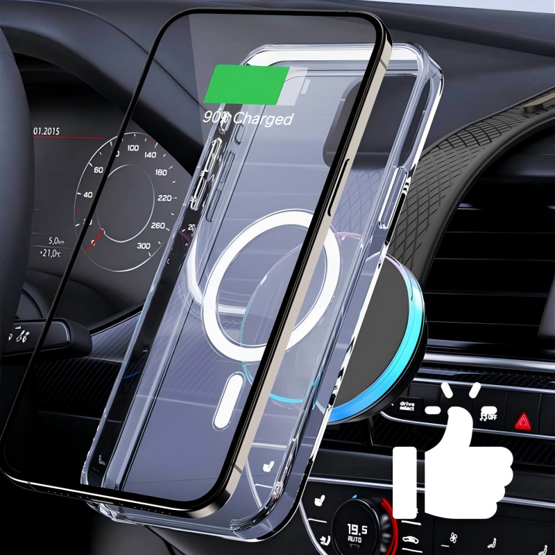 RICARICA WIRELESS RAPIDA: Alimenta il tuo telefono compatibile con ricarica magnetica a 15W — senza bisogno di cavi. L’allineamento magnetico potente garantisce una ricarica efficiente durante la guida, mantenendo il dispositivo pronto senza complicazioni.