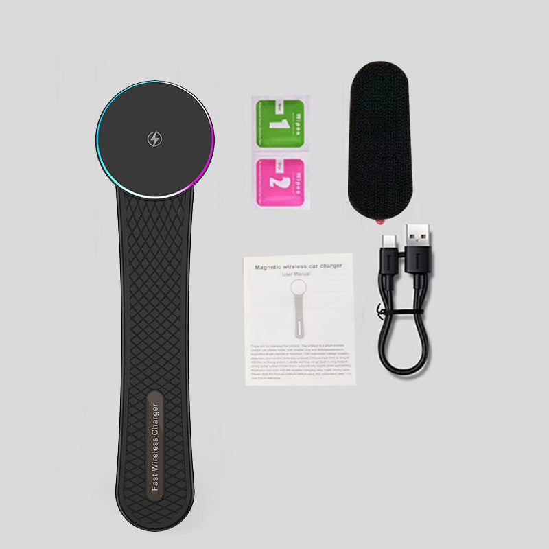 Contenuto della confezione: 1 * Supporto per Auto con Ricarica Rapida e Braccio Regolabile a 360° + 1 * Salvietta all’Alcol + 1 * Velcro + 1 * Cavo di Ricarica + 1 * Anello Magnetico