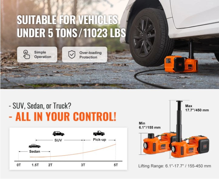 AMPIA VERSATILITÀ – Progettato per la versatilità, questo martinetto idraulico elettrico è adatto a un'ampia gamma di veicoli, tra cui piccoli veicoli da ponte, veicoli fuoristrada e veicoli commerciali. In strada o in garage, è il compagno ideale per sollevamenti rapidi e sicuri.