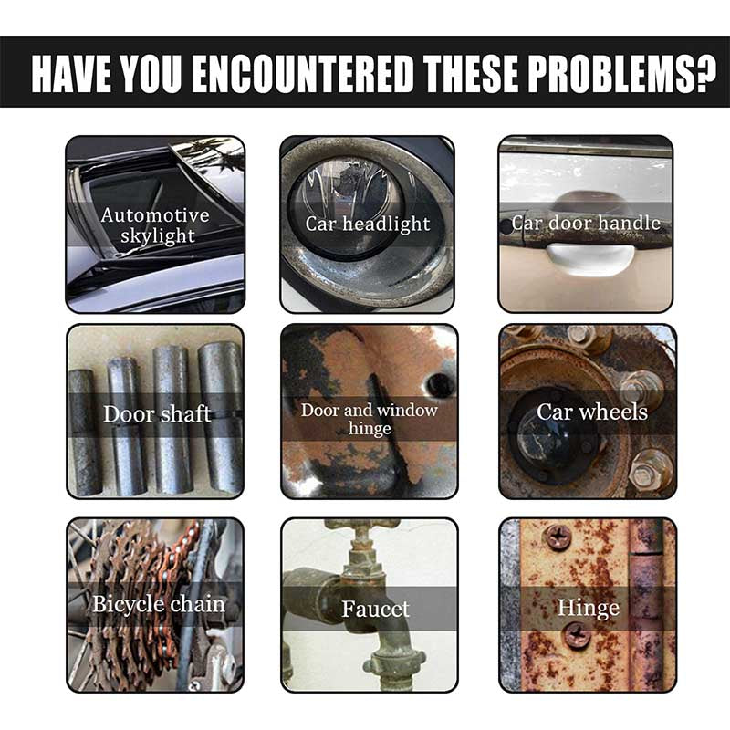 Non preoccuparti! Il nostro "Spray antiruggine per auto" ti aiuterà a risolvere facilmente il problema. Ottimo per la ruggine su utensili, metalli, ghisa, parti di automobili, ecc.